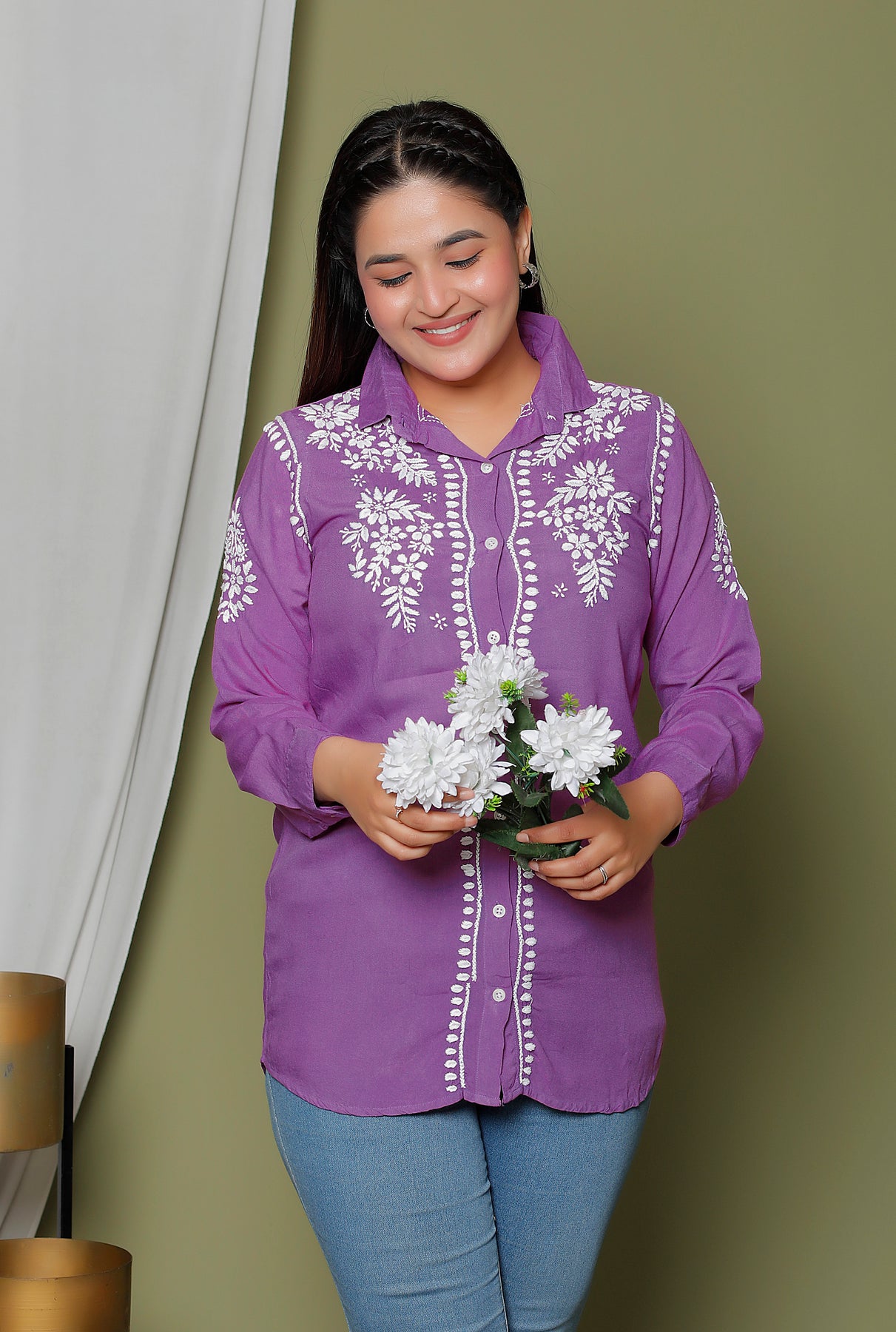 Crafted with signature chikankari design, this modal shirt is a must-have for your professional wardrobe. The cooling fabric ensures all-day comfort, making it perfect for office wear. Elevate your style with this essential outfit.