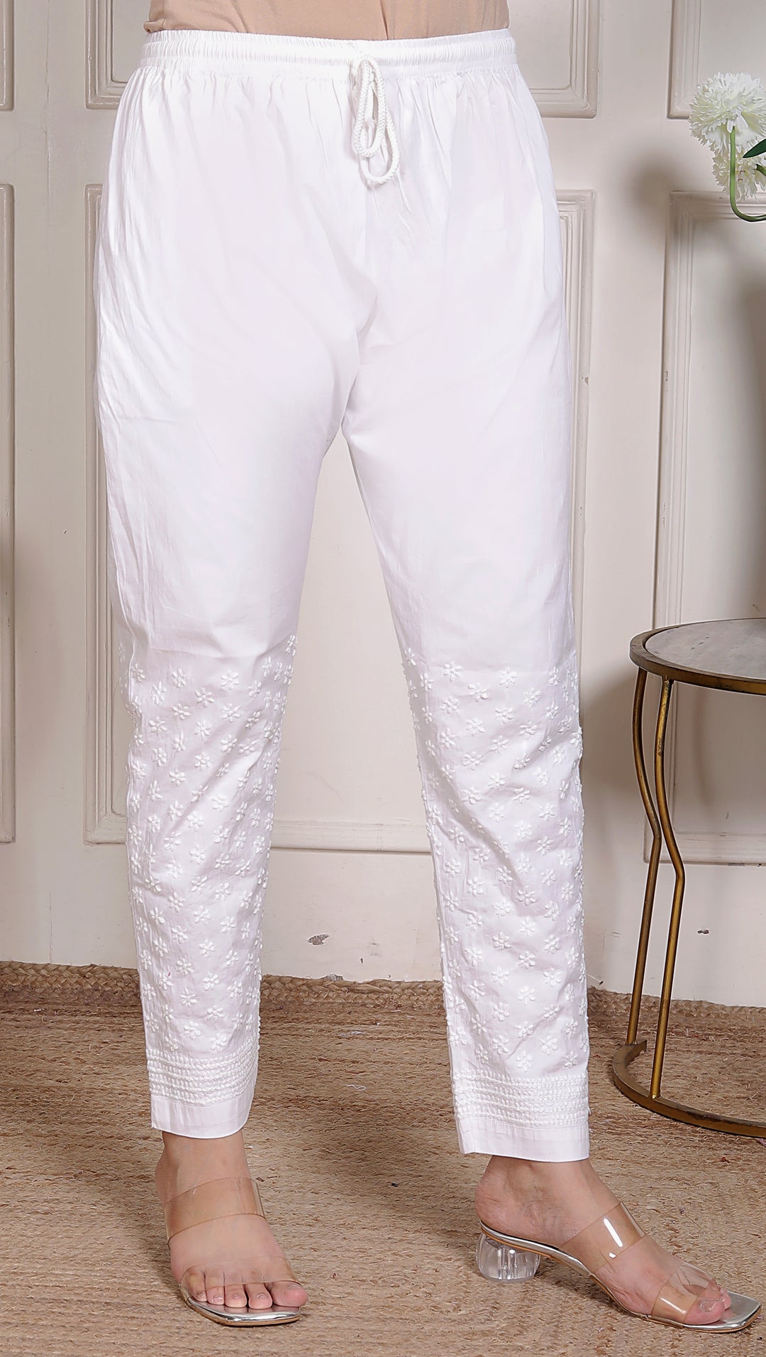 Riya white Cotton pant