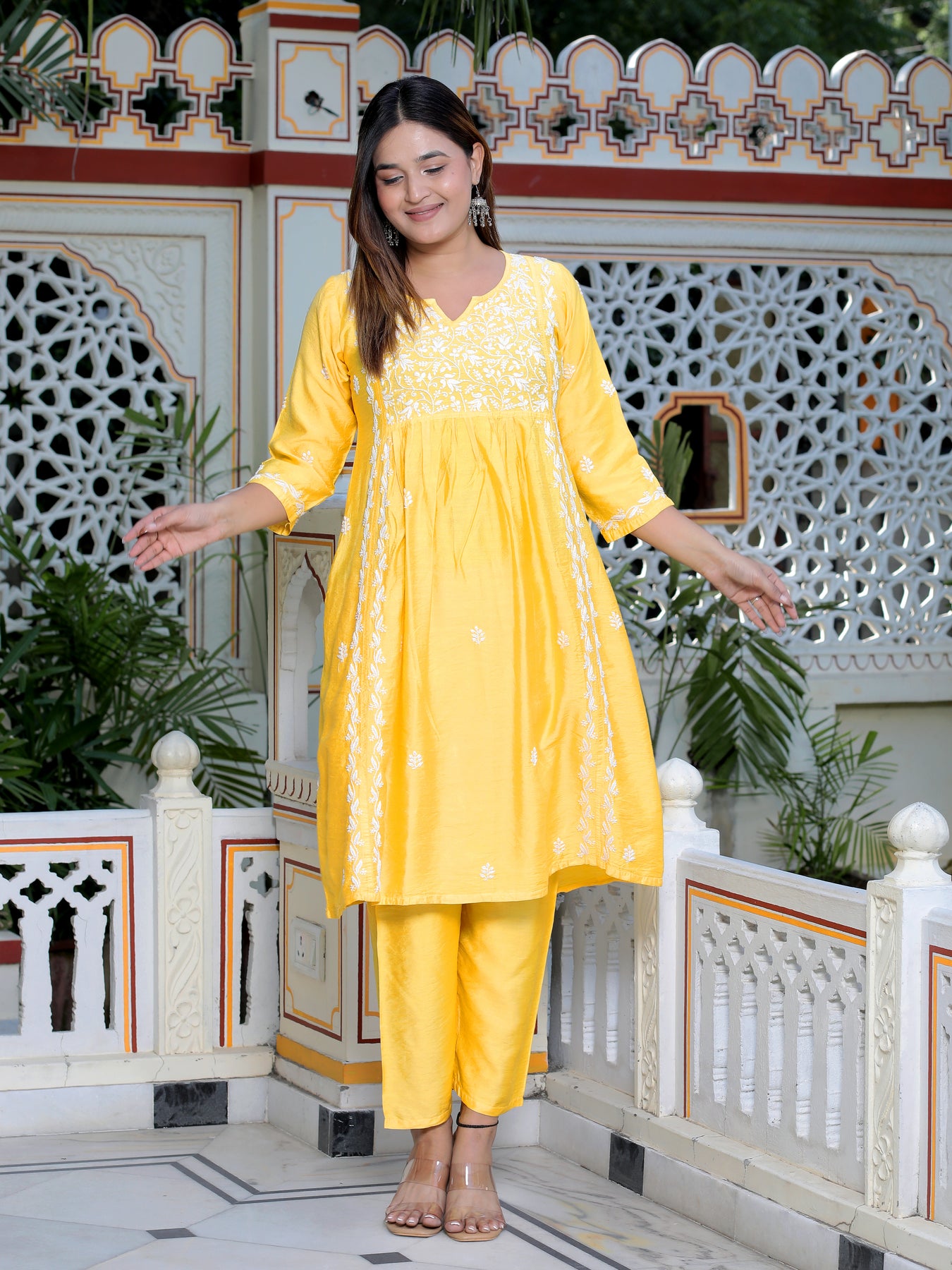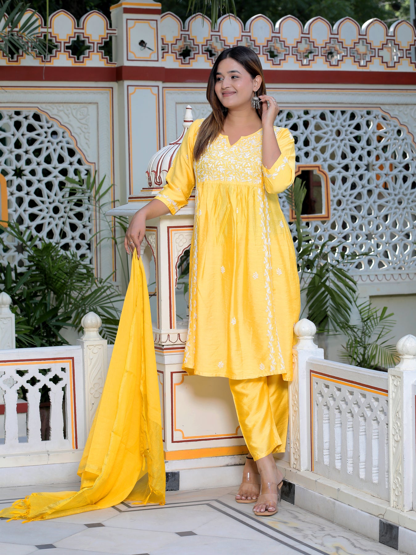 Elevate your festive wardrobe with the Lavina Chanderi Nyra Dress, crafted from exquisite Chanderi fabric that offers a graceful sheen and breathable comfort. Featuring intricate 3D embroidery, this smart silhouette dress is paired perfectly with a matching dupatta, making it an effortless choice for celebrations and special occasions. Embrace elegance and timeless charm in one stunning ensemble.