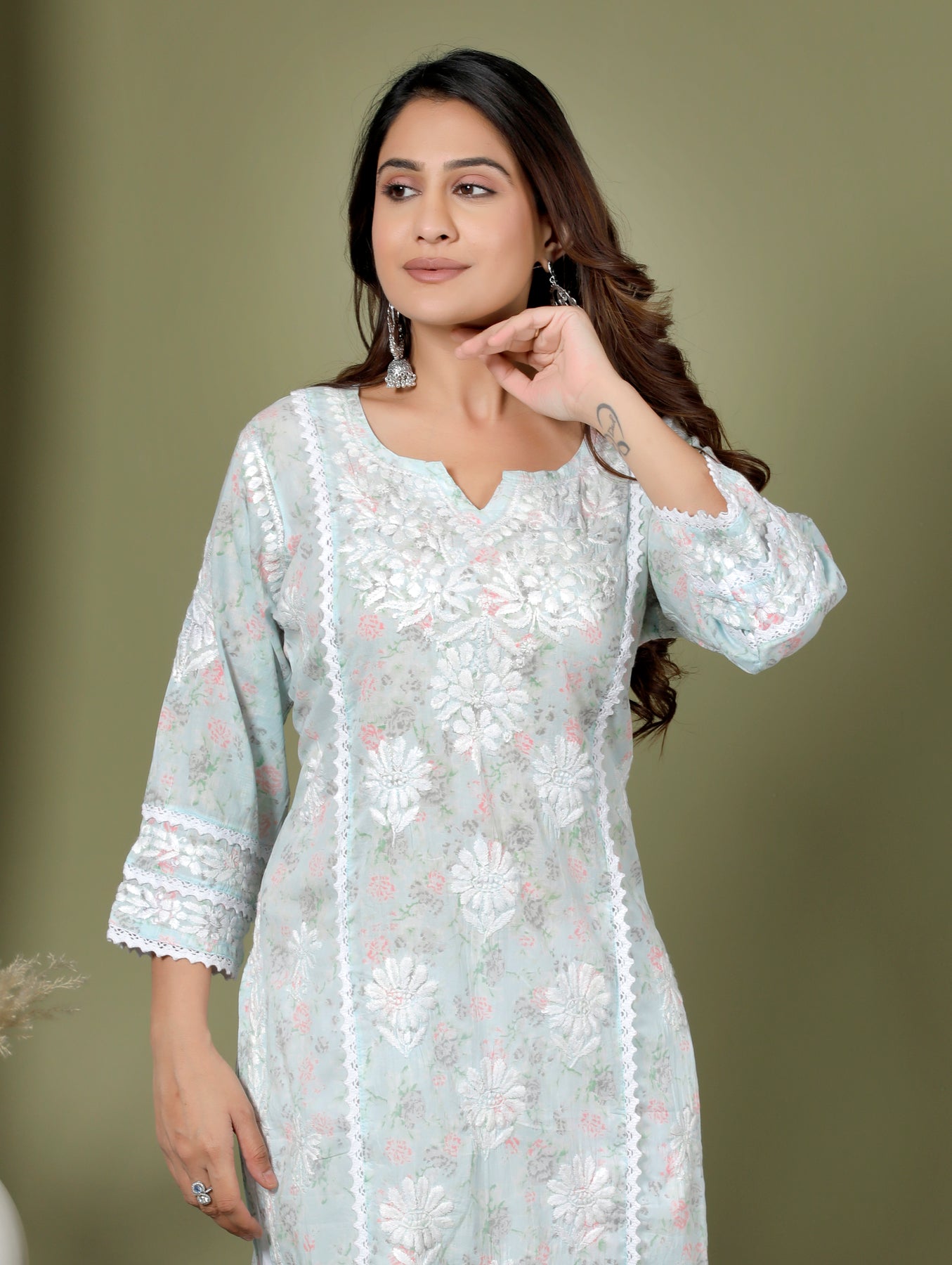 Discover comfort and effortless style with the SUHANA MUL COTTON PRINTED LONG KURTI. Made with soft and breathable mul cotton, it features delicate lace detailing and a soothing texture. Stay cool and dry all day with its sweat-absorbent fabric. Experience the perfect combination of fashion and comfort with a comfortable fit.