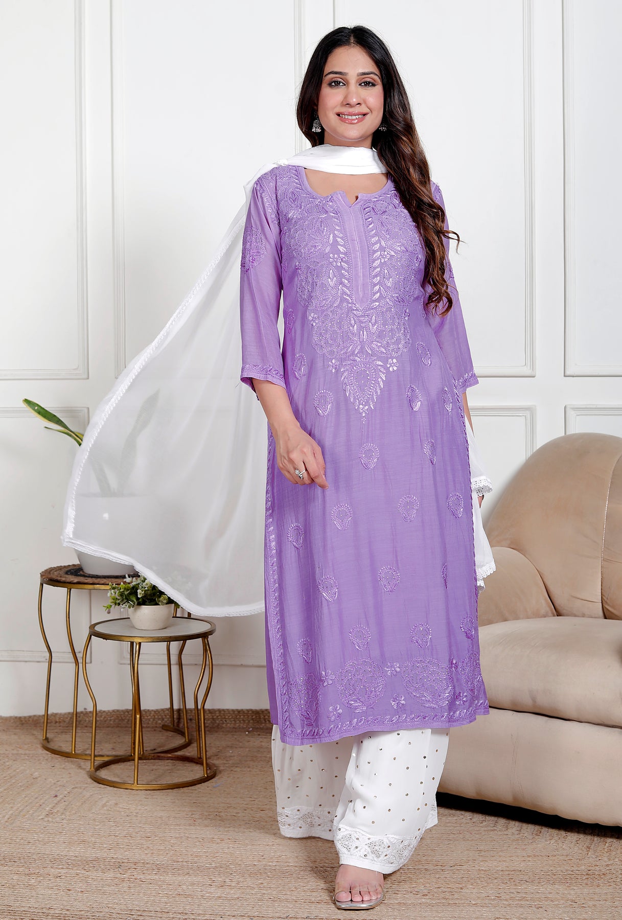 Amreen Muslin Chikankari Long Kurti