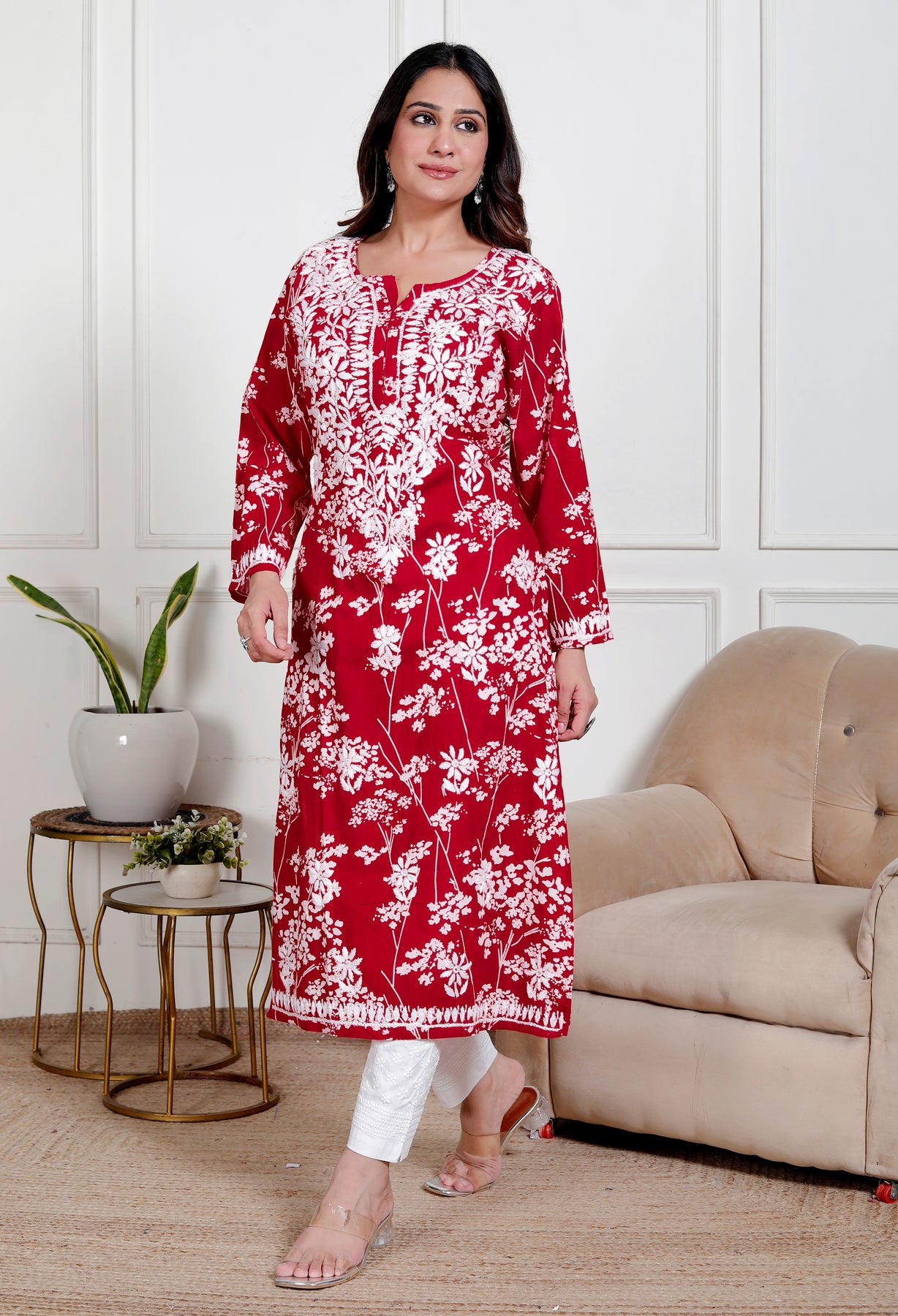 GULNAR MUL COTTON CHIKANKARI LONG KURTI
