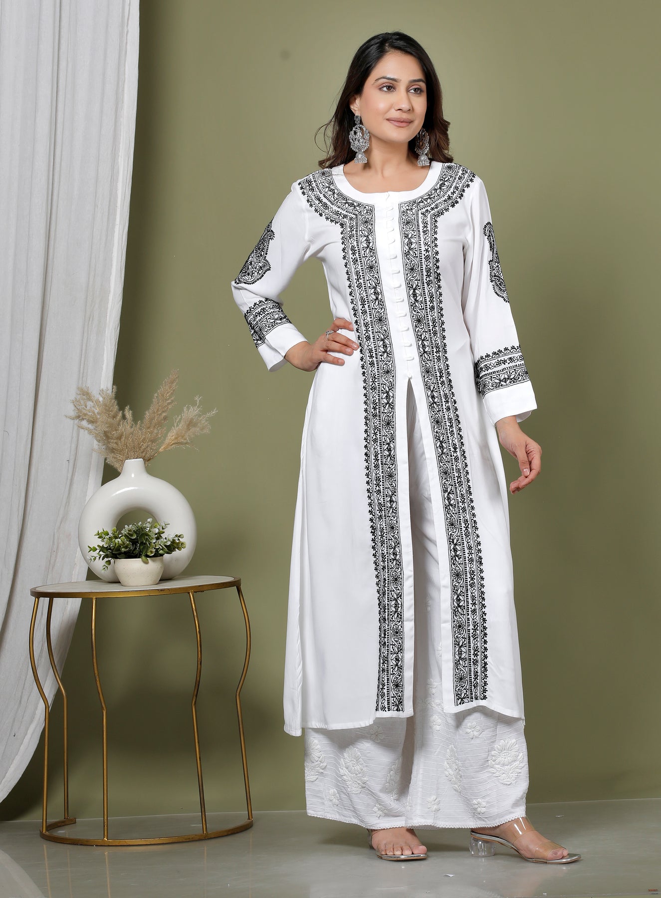 MALLIKA COTTON CHIKANKARI LONG KURTI