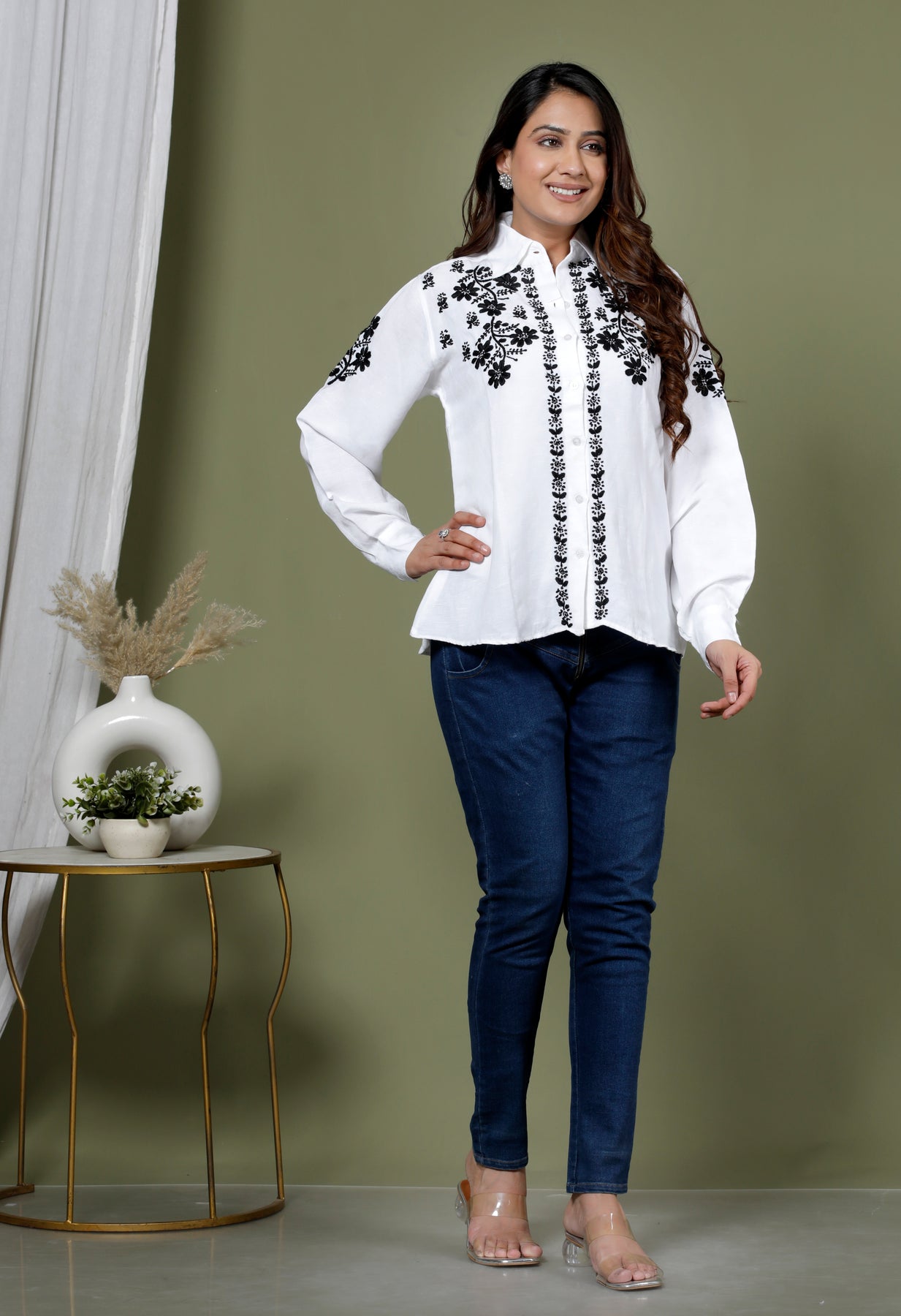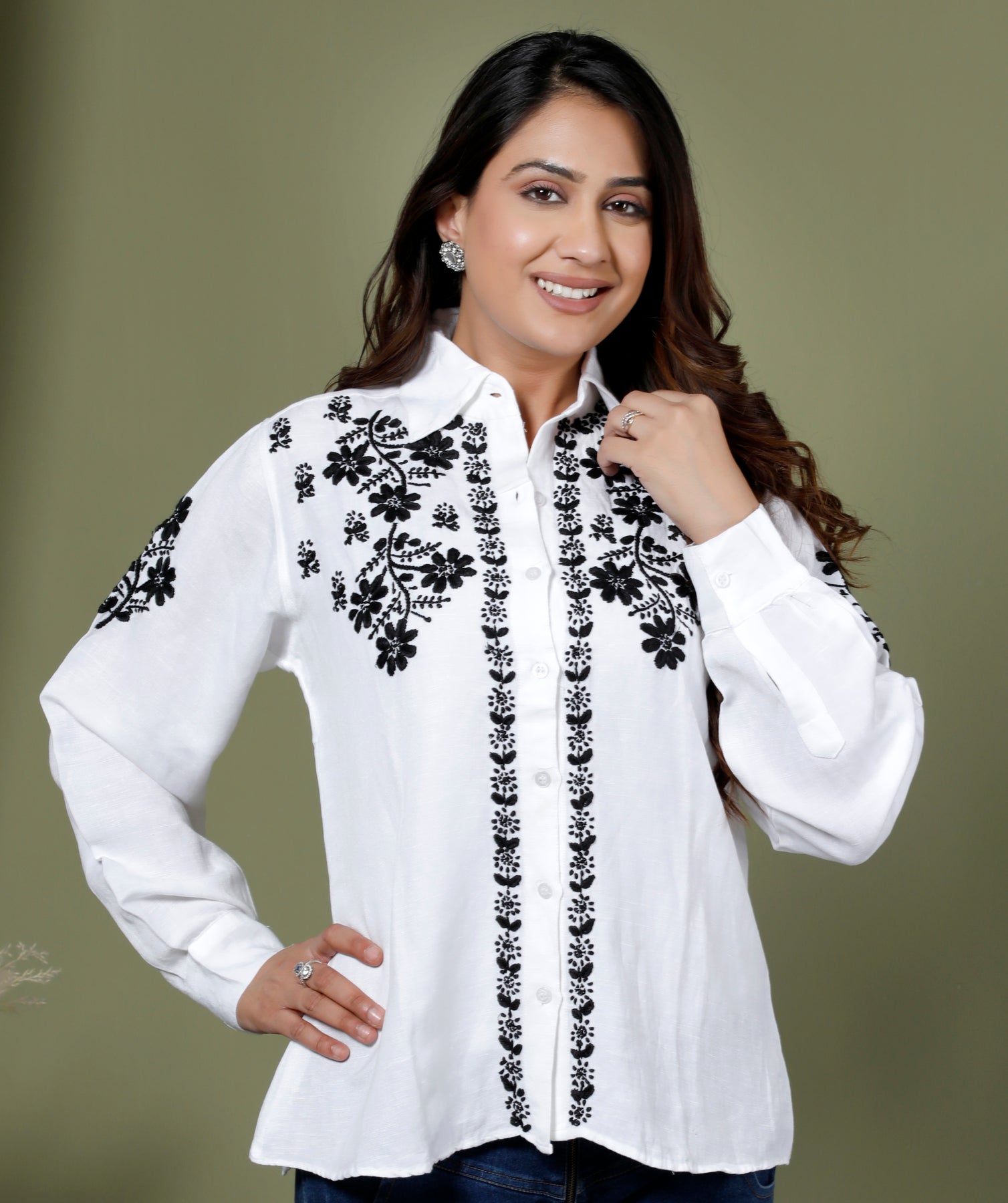Upgrade your formal wear game with our AAVYA LINEN CHIKANKARI SHIRT. Crafted with the finest linen and adorned with beautiful chikankari embroidery, this shirt is perfect for any occasion. Beat the heat in style and make a smart fashion statement with this must-have addition to your wardrobe!