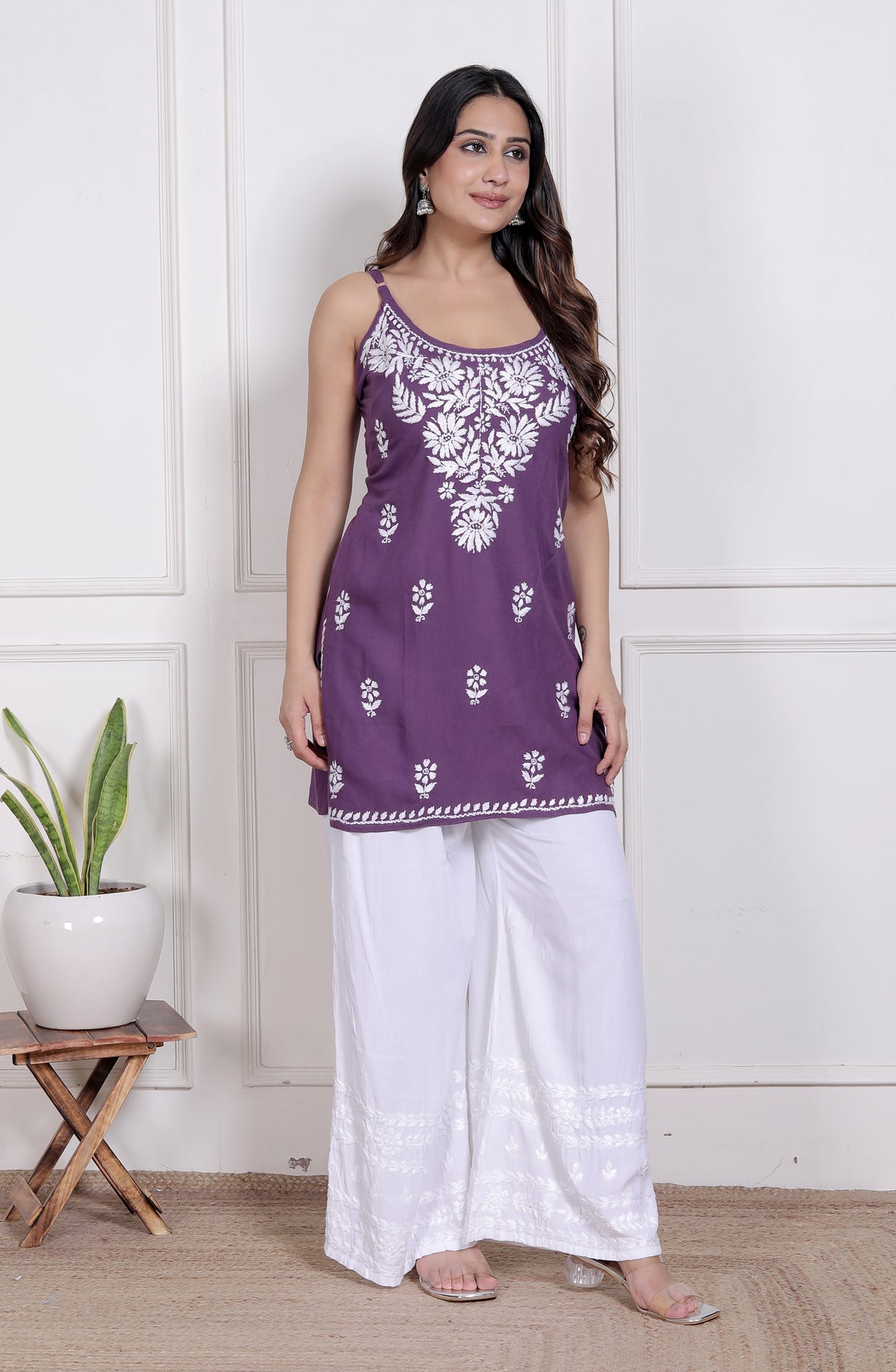 Elevate your summer style with our exquisite Chikankari spaghetti kurtis!  Made from soft, breathable rayon, these pastel-colored beauties are perfect for warm weather. The intricate Chikankari embroidery adds a touch of elegance, while the spaghetti straps keep you cool and comfortable.