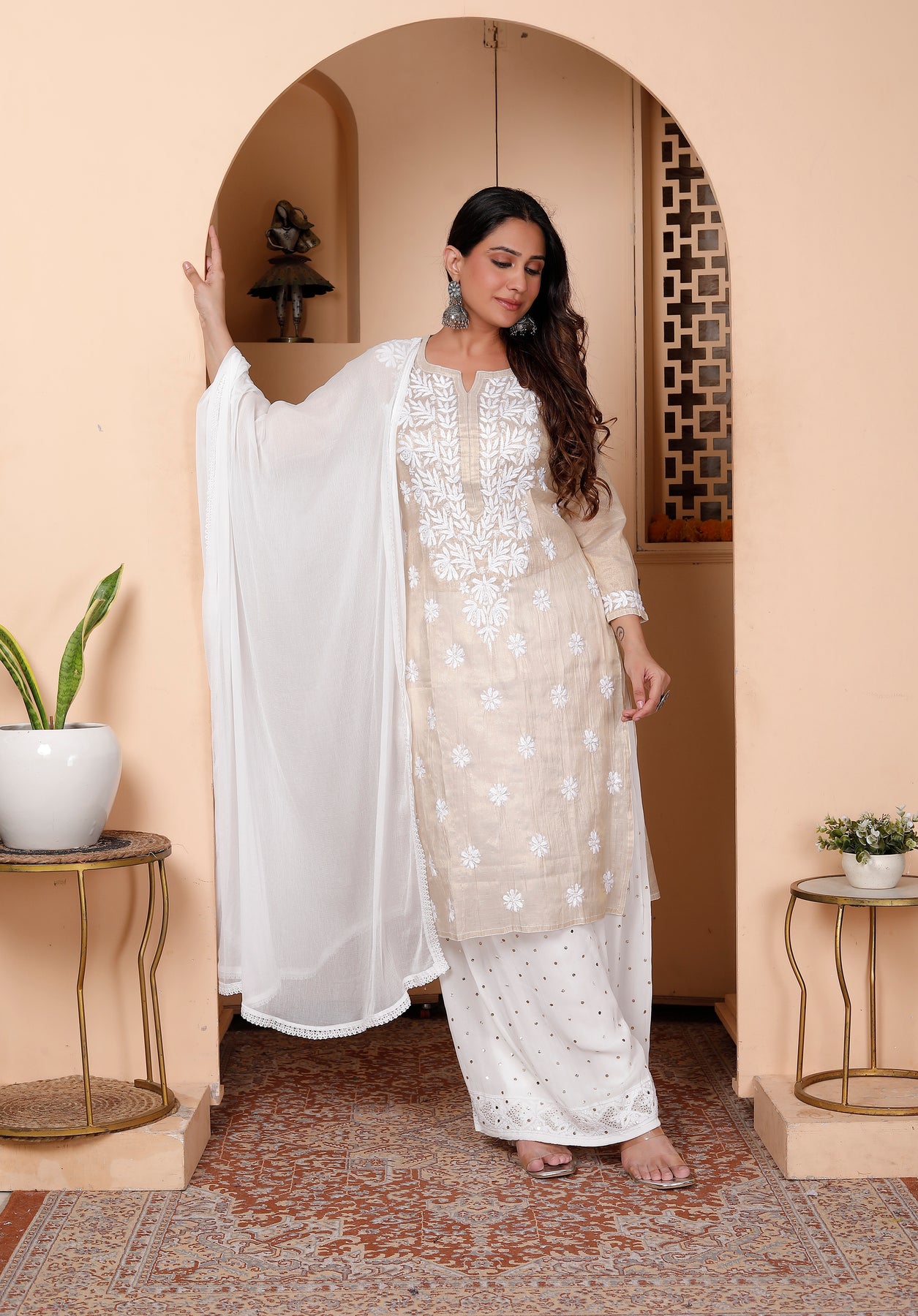 Elevate your festive wardrobe with this Tissue Chikankari Long Kurti, a perfect blend of elegance and subtle charm. Crafted for those who appreciate refined style, its delicate chikankari embroidery adds a timeless touch, making it suitable for every occasion. Experience comfort and grace in one exquisite piece that effortlessly complements your celebrations.